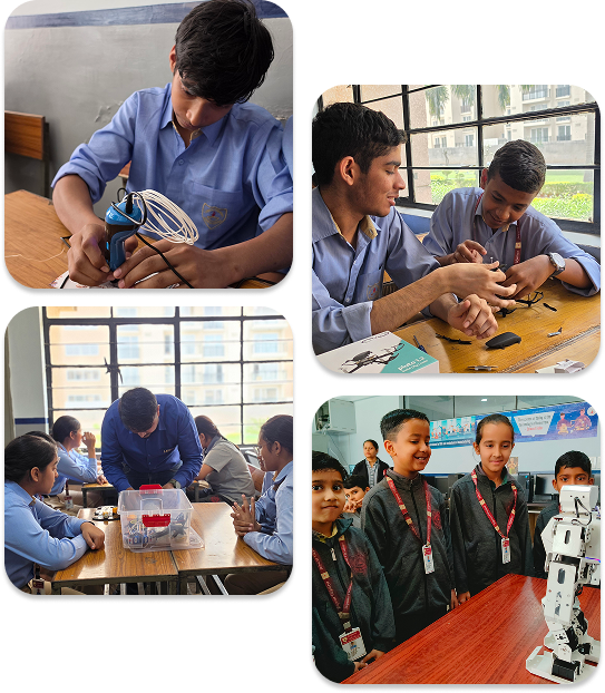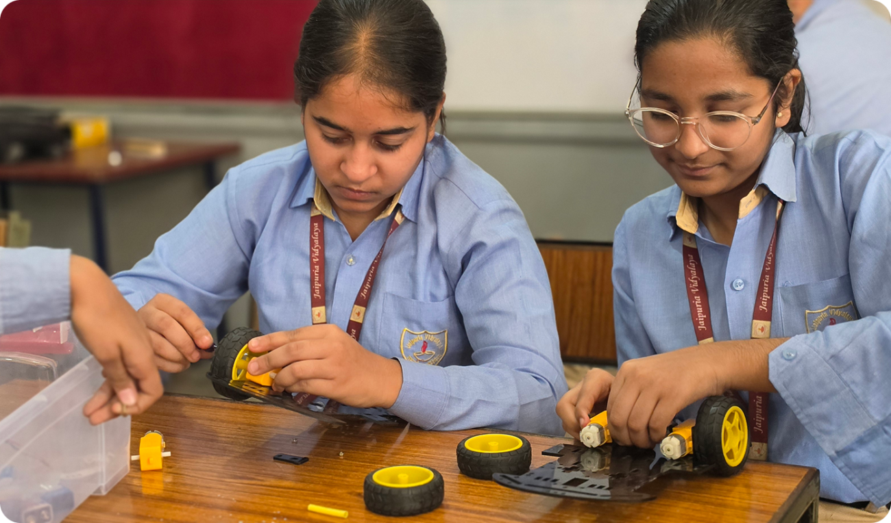At Jaipuriya Vidyalaya, we believe in moving beyond rote learning to hands-on innovation through our advanced STEAM Lab powered by I-KIT LAB. The lab integrates Robotics, Artificial Intelligence (AI), Mechatronics, Coding, and IoT to provide students with real-world skills, critical thinking, and experiential learning in a future-ready environment.